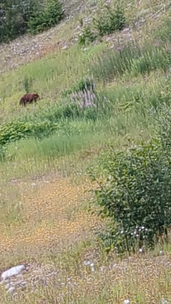 One of the activities I did was going offroad with a 4×4 with a guide to some more distant bear watching spots. We looked at the trees and the grass, but couldnt see any bear. In the end we went to creek valley mountain area where we saw a cinnamon bear / brown black bear with a cup.